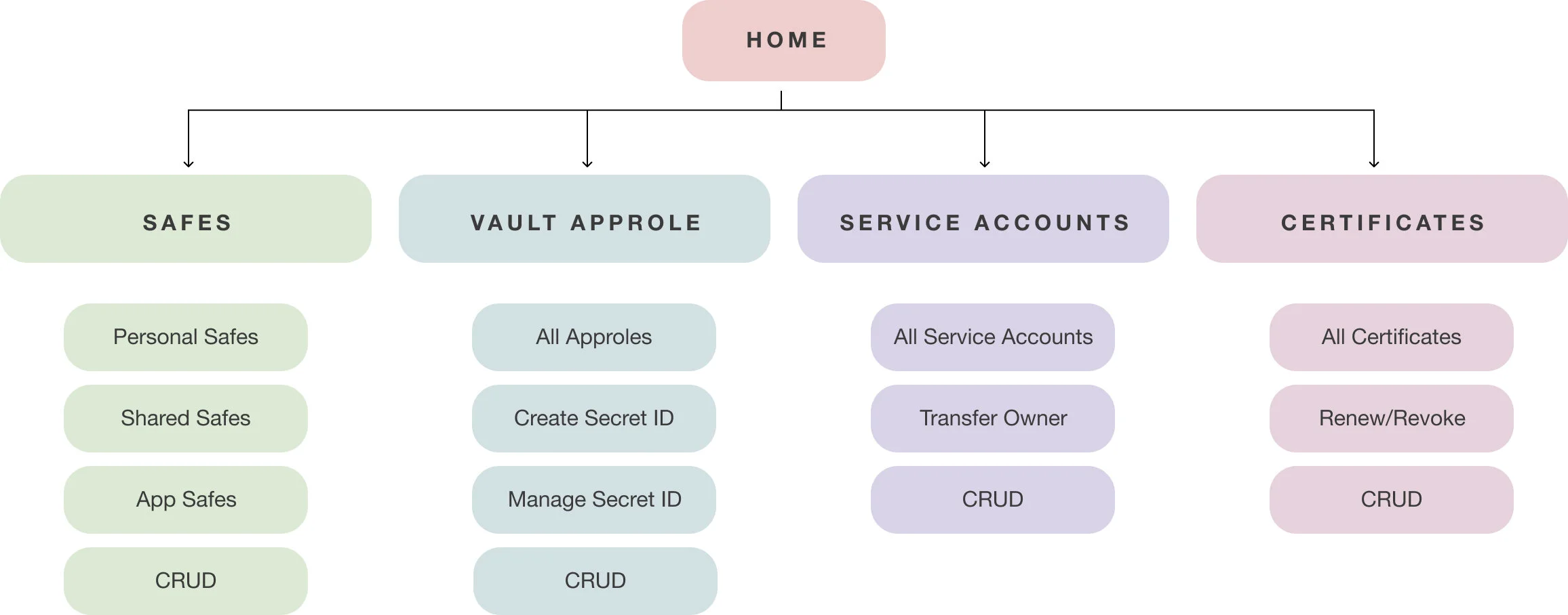 From our observed pain points we noticed three factors that was affecting the experience - Navigation, Content Organization, and Visual Hierarchy. Choosing 3 competing products we analyzed how they solved for the 3 factors. The three products were HashiCorp Vault (T-Vault is built on the Vault) , AWS Secrets Manager (competing product with comprehensive features to address other user goals) and Last Pass (consumer facing product with tougher adoption rates).